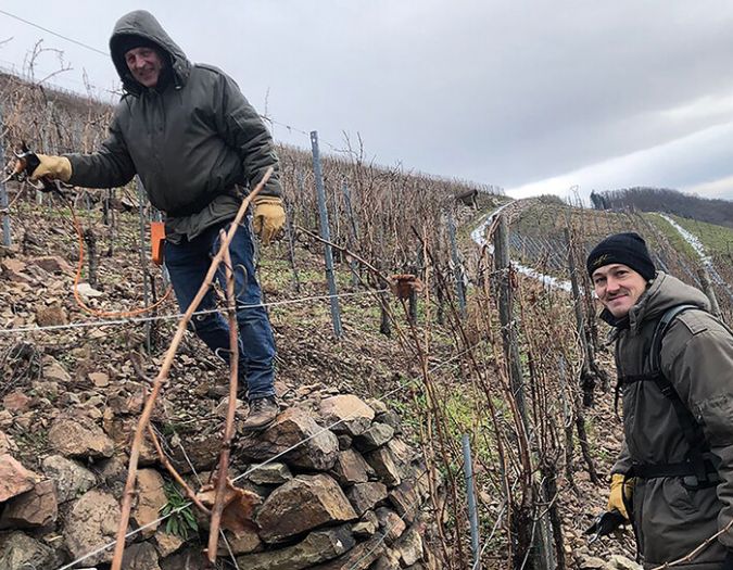 Bernard Schoffit bezit 17 ha wijngaard, waarvan 10 in de wijngaard Harth, ten noordwesten van Colmar. De alluviale bodem is hier sterk doorlatend en bestaat uit stenen en zand. Van de aangeplante rassen is de helft ouder dan 30 jaar, de chasselas zelfs ouder dan 60 (!) jaar. Sinds 1986 bezit Bernard, inmiddels terzijde gestaan door zijn zoon Alexandre, tevens ruim 5 ha in de unieke grand cru wijngaard Rangen nabij het plaatsje Thann. Rangen is de enige wijngaard in de Elzas met een rotsachtige bodem van vulkanische oorsprong. De warmte wordt vastgehouden door de keiharde rotsen en de steenachtige bodem. De nabijgelegen rivier de Thur beschermt de wijngaarden tegen voorjaarsvorst. De 3 voornaamste eigenaren van Rangen zijn Zind-Humbrecht, Schoffit en Wolfberger, een wijncoöperatie in Eguisheim. De Clos Saint-Théobald reikt van het midden tot de top van de Rangen en meet 5,5 ha van de in totaal 22,13 ha van de Rangen. Op Clos Saint-Théobald heeft Bernard Schoffit 4 druivenrassen aangeplant; riesling, pinot gris aangevuld met klein beetje gewurztraminer en muscat, die elk gevinifieerd worden tot cépagewijn. In een ver verleden is voor de grand cru Rangen een document opgesteld waarin is vastgelegd dat het verboden is om de wijn van die wijngaard te mengen met een ander terroir. Ook het blenden van druivenrassen is verboden. Men streefde in de wijn naar een ultieme expressie van het terroir. Tevens bezit Bernard een perceel van 1 ha riesling in de grand cru Sommerberg nabij Niedermorschwihr. Bernard is een wijnmaker pur sang, hij kent geen compromissen als het gaat om kwaliteit, is uiterst gedreven en kijkt puur naar resultaat op de lange termijn. In al zijn wijngaarden wordt met veel respect voor de bodem gewerkt, insecticiden zijn hier taboe. Het rendement per ha is sterk beperkt, voor de basiswijnen gemiddeld 55 hl/ha en voor de grand cru wijnen 25 à 30. De wijnen van Schoffit worden gerekend tot de allerbeste van de Elzas.